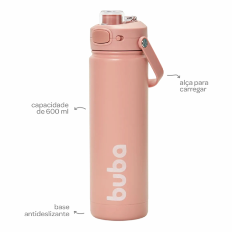 COPO GARRAFA ALUMINIO TERM C/ALCA E TRAVA ROSA 600ML BUBA